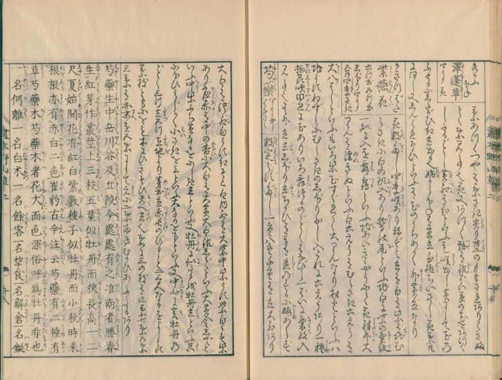 また、『繪本野山草』では、植物の和名だけでなく漢名も併記されています。これは、当時の日本における本草学の影響を強く反映しています。本草学は、中国の文献に基づいた植物の知識を重視しており、漢名の併記は、当時の学術的な状況を反映するだけでなく、中国の植物図譜との比較を容易にするという意図もあったと推察されます。このような記述方法は、当時の知識人が植物を多角的に捉えようとしていた姿勢を示しています。