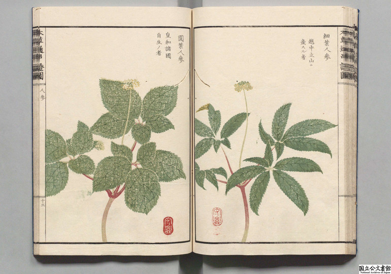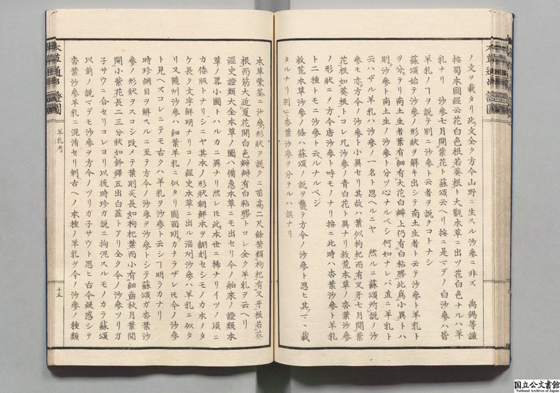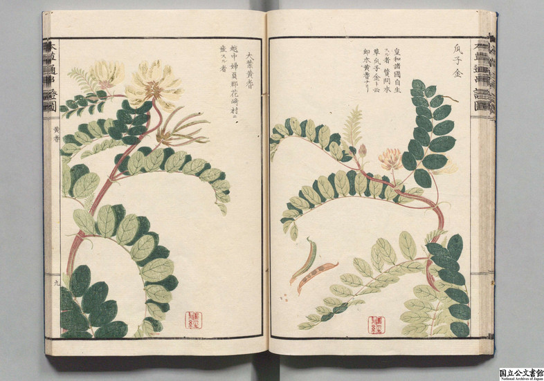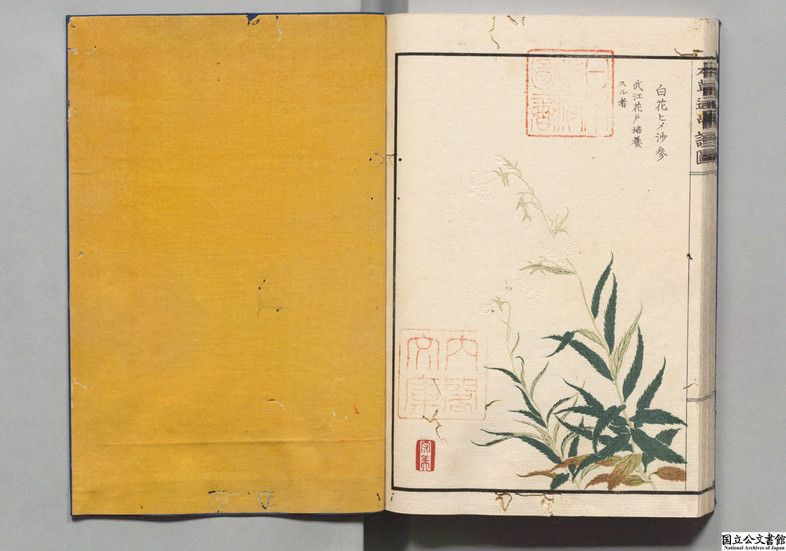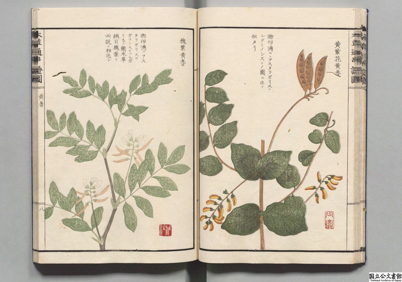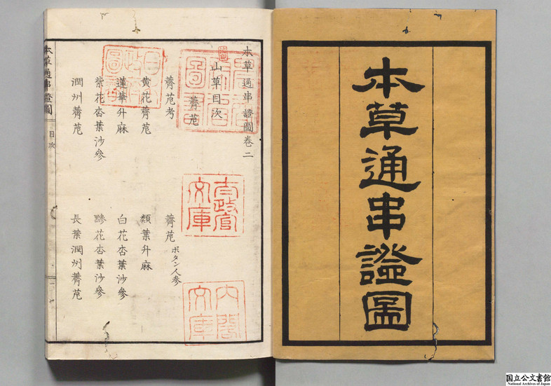 本草通串証図 国立公文書館デジタルアーカイブhttps://www.digital.archives.go.jp/file/125717 (全5巻のうち巻1巻2のみ所蔵)