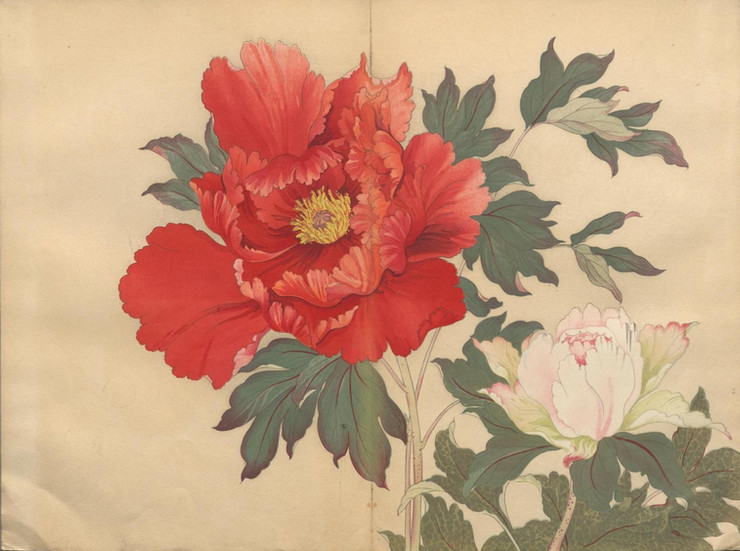 一方、『象形花卉帖』は、大正12年(1923)に刊行された全3巻の植物画集で、牡丹を中心に描かれています。この画集は大英図書館にも収蔵されており、その芸術的価値が国際的にも認められています。