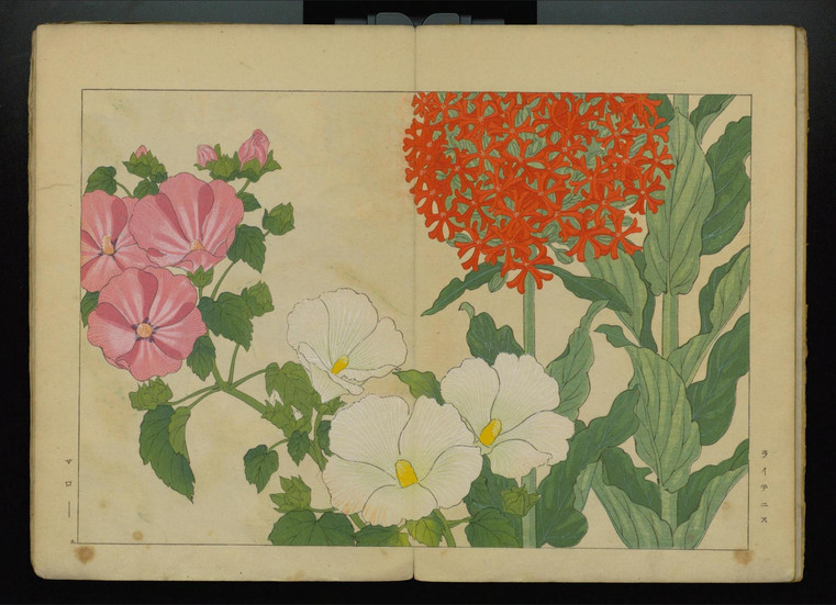谷上広南 編『象形花卉帖』第1巻,芸艸堂,大正12. 国立国会図書館デジタルコレクション https://dl.ndl.go.jp/pid/13578795