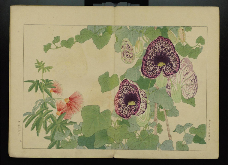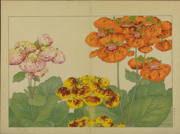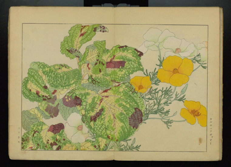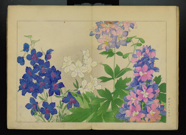 『西洋草花図譜』は、このような洋花への関心が高まる時代背景の中、大正6年(1917)5月に全5帖の木版画集として芸艸堂から刊行されました。また、『象形花卉帖』も同様に、大正12年(1923)に芸艸堂から刊行されています。